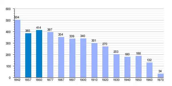 | Gráfica de evolución demográfica de Trevijano[3] entre 1842 y 1970 |