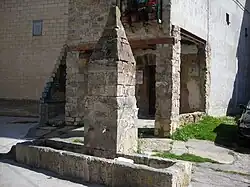 - Fuente. Situada en la plaza del pueblo, está fechada por una inscripción en mayo de 1918.[8] Posiblemente su origen es anterior, aunque en el Diccionario de Pascual Madoz de 1850 no se menciona. Construida con sillares de piedra, consta de un abrevadero bajo y una columna apuntada con dos caños. Dentro del pueblo hay otro antiguo abrevadero, la Fontana, mal conservado.