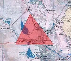 El Triángulo Suní se refiere a una expresión utilizada por los países occidentales para describir a una zona geográfica en Irak situada al noroeste de Bagdad, en el área central del país.[1] Los vértices del triángulo son Bagdad, Ramadi y Tikrit y en el interior del mismo quedan ciudades como Faluya y Samarra. Tikrit es un feudo de Saddam Hussein, el presidente de Irak derrocado por la invasión de Irak de 2003.