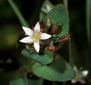 El género se caracteriza por las hojas contrarias de punta roma y las flores de color rosa con 9 estambres.