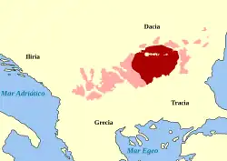 Pero la tribu tenía un radio de acción que rebasaba los límites de la Tribalia. Algunas fuentes relacionan su historia con el área de la desembocadura del Danubio. Por lo menos, con motivo de sus guerras con los macedonios se desplazaron hacia esa zona y, según Apiano, tras ser derrotados por los romanos se instalaron definitivamente al norte del delta, en la actual costa rumana del mar Negro.