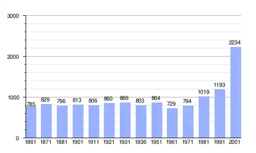 | Gráfica de evolución demográfica de Tribiano entre 1861 y 2001 |