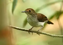 ![]() Tordina pechiblanca, Trichastoma rostratum | ||