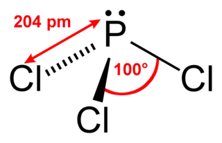El tricloruro de fósforo es un compuesto químico de fósforo y cloro, con la fórmula química PCl3. Su geometría molecular es trigonal piramidal. Es el más importante de los cloruros de fósforo. Es un compuesto químico industrial importante, que se usa en la manufactura de compuestos organofosforados para una amplia variedad de aplicaciones. Tiene una señal 31P NMR aproximadamente a +220 ppm.