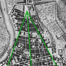 Actualmente al final de las tres calles que componen el tridente se encuentran: