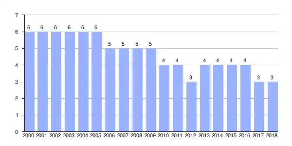 | Gráfica de evolución demográfica de Trigás entre 2000 y 2018 |