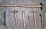 Diversos tipos de mazas y martillos habituales en el taller de un briquero.