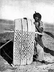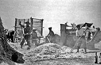 • Golpeando las gavillas de cereal contra una piedra majadera, o una tabla llamada tarugo majadero.