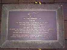 Trim también aparece en la primera estatua levantada de Flinders en Inglaterra, la cual se encuentra en Donington, Lincolnshire, la ciudad natal de Flinders.
