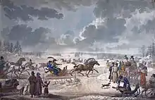 - Una troika es un trineo tirado por tres caballos.