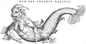 Conrad von Gesner en su capítulo sobre el dios Tritón en Historia animalium IV (1558) le dio el nombre de «sátiro del mar» (en latín: Pan- vel satyrus marinus) a la imagen de un artista, el cual dijo que era un «ictiocentauro» o «diablo del mar».[1][2]