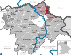 Se encuentra ubicado al norte del estado, en la región de Alta Franconia, a poca distancia de la frontera con los estado de Turingia y Sajonia.