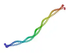 ![]() Modelo de la estructura de un dímero de tropomiosina. | ||