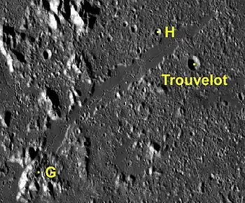 Por convención estos elementos son identificados en los mapas lunares poniendo la letra en el lado del punto medio del cráter que está más cercano a Trouvelot.