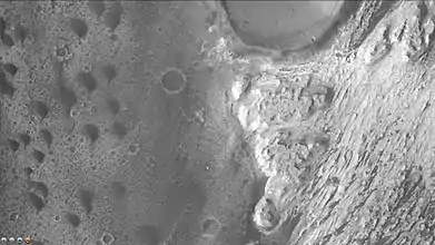 ![]() Detalle de estratos en un montículo de Trouvelot (HiRISE) |