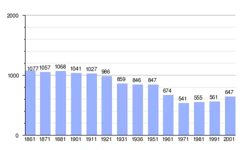 | Gráfica de evolución demográfica de Trovo entre 1861 y 2001 |