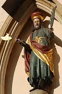 | Atributos | Hacha y palma del martirio | |