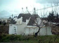 Un trullo (plural italiano, trulli; truddi en apulo-barese) es una antigua construcción rural propia de la región italiana de Apulia, que se realiza íntegramente con muros de mampostería de piedra en seco –sin mortero–, rematada con una gran cubierta de forma cónica.