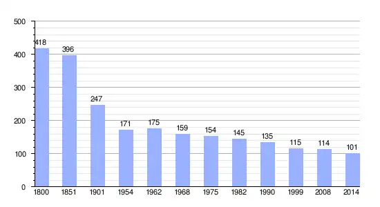 Los datos demográficos contemplados en este gráfico de la comuna de Truttemer-le-Petit[4] se han cogido de 1800 a 1999 de la página francesa EHESS/Cassini, y los demás datos de la página del INSEE.[5]