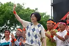 Tsai Ing-wen (en chino tradicional, 蔡英文; pinyin, Cài Yīngwén; Wade-Giles, Ts'ai Ing-wen; Taipéi, 31 de agosto de 1956) es una política y académica taiwanesa que se desempeñó como presidenta de la República de China (Taiwán) desde 2016 hasta 2024.[1] Miembro del Partido Progresista Democrático (PPD), Tsai es la primera mujer presidente de Taiwán. Se ha desempeñado como presidenta del PPD desde 2020 a 2023 y anteriormente de 2008 a 2012 y de 2014 a 2018.[2]