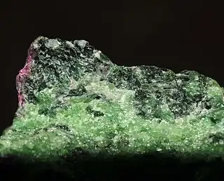 Aparece en eclogitas y otras rocas ígneas ultramáficas, así como en rocas metamórficas de grado medio a alto de metamorfismo. típicamente en anfibolitas.
