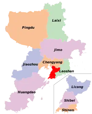 La ciudad-subprovincia de Qingdao se divide en 6 distritos (qu) y 4 ciudades (shi).