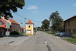 Se encuentra ubicada al este de la región, cerca de la orilla del río Morava —un afluente izquierdo del Danubio—, de la frontera con las regiones de Zlín y Moravia-Silesia, y a poca distancia al este de la ciudad de Brno.[1]