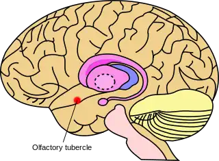 ![]() Localización aproximada del tubérculo olfativo en el cerebro | ||