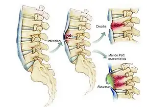 ![]() El mal de POTT es la infección tuberculosa de la columna vertebral. | ||