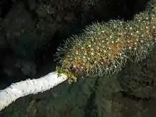 La principal amenaza para su supervivencia es la reducción de arrecifes coralinos en su hábitat, debido a una combinación de amenazas: el blanqueo de coral producido por el aumento de la temperatura del agua, como consecuencia del cambio climático global; los daños en su frágil esqueleto, producidos por los huracanes; y su cosecha para comercialización, tanto como remedio médico, como para el mercado de acuariofilia, el de joyería y el de curiosidades.