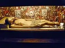 El Entierro de Cristo ha sido un tema popular en el arte, que se desarrolló en Europa occidental en el siglo X. Aparece en ciclos de la Vida de Cristo. Aparece en ciclos de la Vida de Cristo, donde sigue a la Deposición de Cristo o a la Lamentación sobre Cristo muerto. Desde el Renacimiento, a veces se ha combinado o confundido con alguna de ellas.[86]