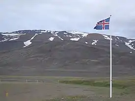 ![]() Vista del volcán Tungnafellsjökull y la bandera de Islandia | ||