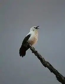 El turdoide bicolor es un pájaro grande que mide entre 24 y 25 cm, y pesa entre 75 y 95 g. Los adultos tienen el plumaje de la cabeza y el cuerpo de color blanco, mientras que sus plumas de vuelo tanto de las alas como de la cola son de color pardo negruzco. Su pico es negro y el iris de sus ojos anaranjado. Los machos y las hembras son indistinguibles por su aspecto. Los juveniles inicialmente tienen plumaje de color pardo oliváceo que progresivamente se transforma en blanco.