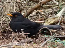 El mirlo común o, más comúnmente, mirlo (Turdus merula) es una especie de ave paseriforme de la familia Turdidae.