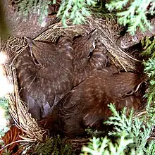 - Vidéo IBC : dos T.m.merula juveniles impacientes siendo alimentados por su padre.