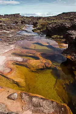 El parque nacional Canaima se extiende sobre 30.000 km² hasta la frontera con Guyana y Brasil, por su tamaño es considerado el sexto parque nacional más grande del mundo. Cerca de 65 % del parque está ocupado por mesetas de roca llamadas tepuyes. Estos constituyen un medio biológico único, presentando también un gran interés geológico. Sus acantilados escarpados y sus caídas de agua (incluyendo el Salto Ángel, que es la caída de agua más elevada del mundo, a 1.002 m) forman paisajes espectaculares.