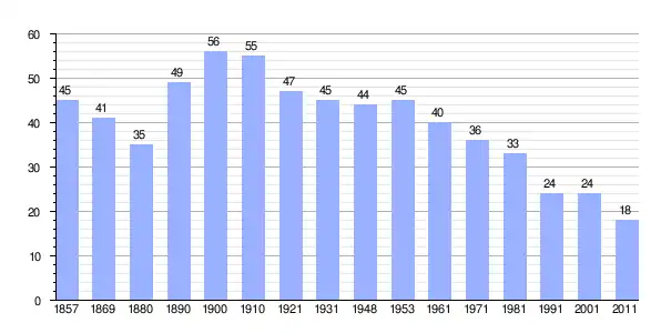 | Gráfica de población de Tusti Vrh 1857-2011 |