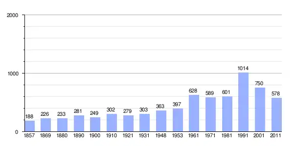 | Gráfica de población de Tvrđavica 1857-2011 |