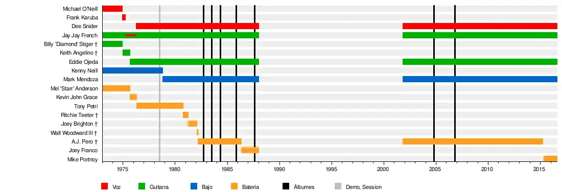 Dee Snider Eddie Ojeda Jay Jay French Mark Mendoza Joey Franco Sarah Lüthje A. J. Pero † Ritchie Teeter† Joe Markowski† Geoff Workman† | ||