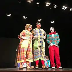 ![]() Txirri, Mirri y Txiribiton en 2018. De izquierda a derecha: Kattalin Ansorena (Mirri), Juanma Zaldua (Txiribiton) y Peru Ansorena (Txirri), este último con la cara blanca. | ||