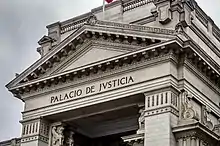 Palacio de Justicia de Lima, ejemplo de inscripción que utiliza V en vez de U.