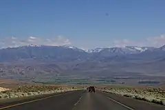 ![]() Vista de la US 395 descendiendo por el Valle Owens | |||||||||