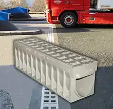 - Canales de drenaje en el centro comercial Arese de Milán (1.100 metros lineales de canales a lo largo de toda la superficie del aparcamiento subterráneo),[20] en la planta de 50.000 m² para fabricación de pizzas congeladas de Campofrío en Ólvega (Soria), en los accesos al Camp Nou,[21] en el museo Guggenheim de Bilbao y en los aeropuertos de Madrid Barajas, Málaga o Sao Paulo Guarulhos entre otros.