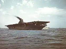 ![]() El USS Franklin (CV-13) operando cerca de las Marianas en agosto de 1944 | ||