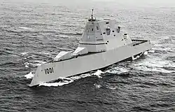 El USS Michael Monsoor (DDG-1001) es un destructor de la clase Zumwalt de la Armada de los Estados Unidos. Es la segunda unidad de su clase, puesta en servicio en 2019. La clase Zumwalt fue diseñada como un combatiente de superficie multimisión para operaciones de ataque terrestre y litorales con la misión de apoyar tanto las campañas terrestres como el espacio de batalla conjunto/naval. Las armas principales son un par de Advanced Gun System (AGS). La Armada canceló el programa de adquisición de municiones para el único tipo de munición que puede usar, por lo que el AGS no puede proporcionar fuego naval de apoyo[7] y los Zumwalt se reutilizaron para la guerra de superficie.[8]