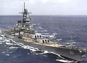 Original: • 9 cañones Mark 7 de 406 mm/50 (16") • 20 cañones Mark 12 de 127 mm/38 (5") • 80 cañones antiaéreos (40 mm/56) • 49 cañones antiaéreos 20 mm/70 Modernización 1984: • 9 cañones Mark 7 de 406 mm/50 (16") • 12 cañones Mark 12 de 127 mm/38 (5") • 32 misiles de crucero BGM-109 Tomahawk • 16 misiles antibuque RGM-84 Harpoon • 4 CIWS Phalanx 20 mm/76 | |
