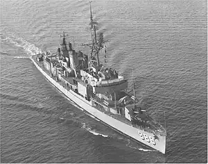 • 6 cañones de 127 mm/38 (3×2) • 12 cañones AA Bofors 40 mm (2×4 + 2×2) • 11 cañones AA Oerlikon 20 mm (11×1) • 10 tubos lanzatorpedos de 533 mm (2×5) • 6 lanzacargas de profundidad • 2 racks de cargas de profundidad | |