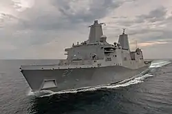![]() El USS Portland durante sus pruebas de mar en el año 2017. | ||