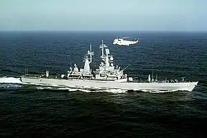 • Radar de búsqueda aérea 3-D AN/SPS-48 • Radar de búsqueda aérea 2-D AN/SPS-49 • Radar de búsqueda en superficie AN/SPS-55 • Radar de control de dirección de tiro AN/SPQ-9 • Radar de control de tiro de misiles AN/SPG-51 • Sonar de proa AN/SQQ-26 | |