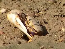 - Esta obra contiene una traducción derivada de «Fiddler crab» de Wikipedia en inglés, concretamente de esta versión, publicada por sus editores bajo la Licencia de documentación libre de GNU y la Licencia Creative Commons Atribución-CompartirIgual 4.0 Internacional.